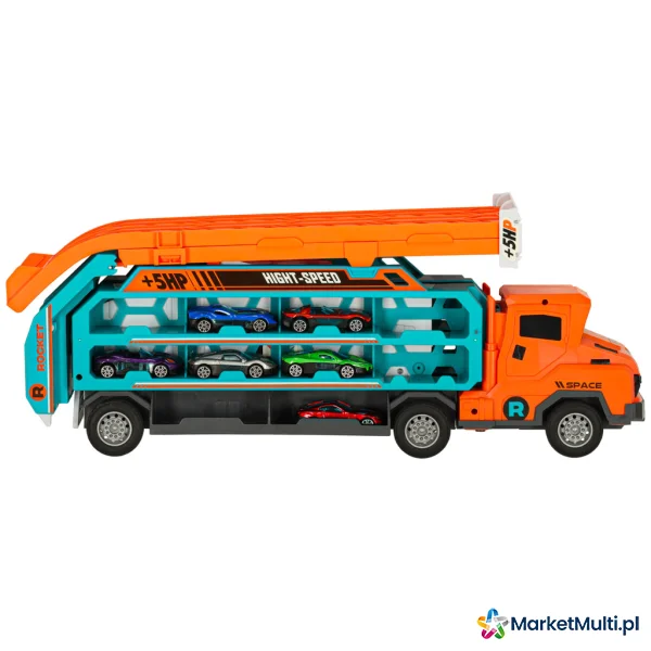 TOR WYŚCIGOWY SAMOCHODOWY LAWETA TRANSPORTER 6 EL. POMARAŃCZOWy