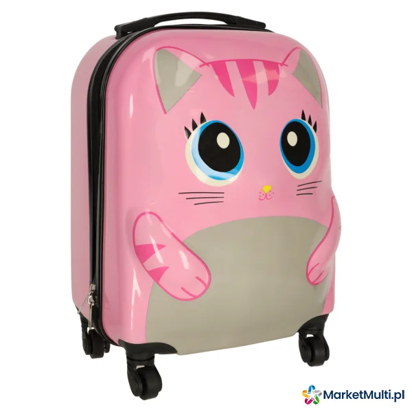 WALIZKA PODRÓŻNA DLA DZIECI BAGAŻ PODRĘCZNY NA KÓŁKACH KOT RÓŻOWA
