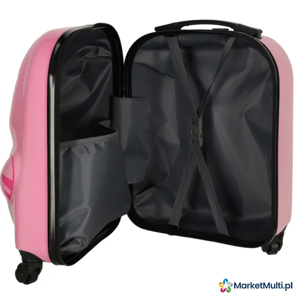 W walizce bez trudu zmieszczą się nie tylko ubrania na kilka dni, ale także ulubione zabawki dziecka, a to wszystko za sprawą dwóch komór – jednej w formie kieszonki, a drugiej z pasami zabezpieczającymi. Dziecko nie będzie miało problemów z prowadzeniem bagażu, ponieważ wyposażony jest w cztery kółka oraz teleskopowy uchwyt.