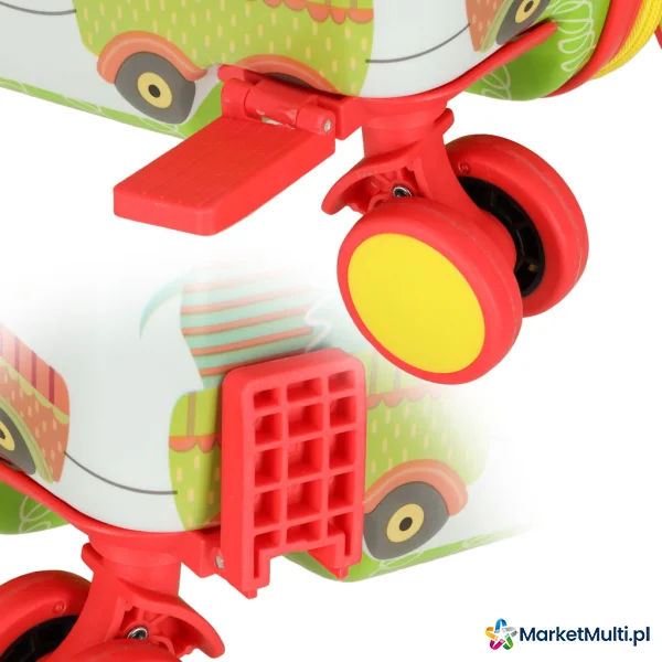 Gdy Twój maluch będzie już zmęczony podróżą, może wygodnie usiąść na walizce, a stopy umieścić na przeznaczanych do tego podpórkach.