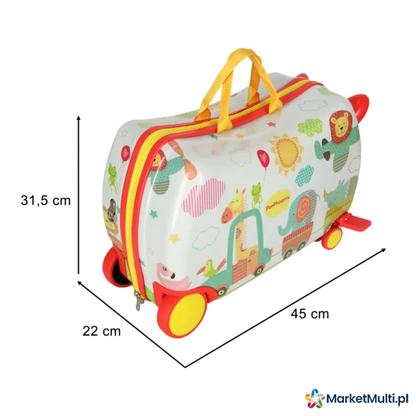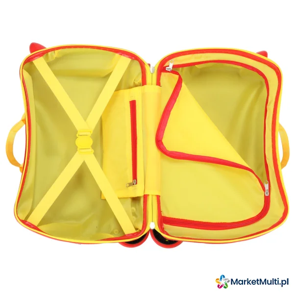 Ale oprócz pięknej grafiki i funkcji siedzenia, walizka ma również inne zalety – przede wszystkim jest niezwykle pakowna – dwie duże komory (w tym jedna zapinana na zamek) zapewniają wystarczającą ilość miejsca na wszystkie niezbędne rzeczy: ubrania, pluszaki i wszystko inne co maluch może potrzebować w trakcie podróży. A mała kieszonka zapinana na zamek pomieści wszelkie drobiazgi, które Twoje dziecko będzie chciało spakować.