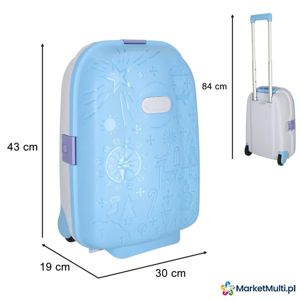 Własna walizka to idealne rozwiązanie dla każdego małego podróżnika gotowego na nowe przygody! Niebieski kolor i ciekawe wzorki przykują uwagę dziecka, a może i nawet zachęcą do samodzielnego spakowania się. W zestawie dodatkowo naklejki umożliwiające podpisanie bagażu.