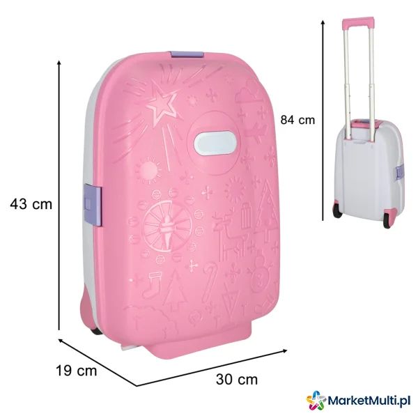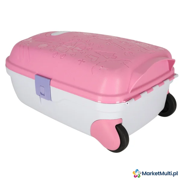 Własna walizka to idealne rozwiązanie dla każdego małego podróżnika gotowego na nowe przygody! Różowy kolor i ciekawe wzorki przykują uwagę dziecka, a może i nawet zachęcą do samodzielnego spakowania się. W zestawie dodatkowo naklejki umożliwiające podpisanie bagażu.