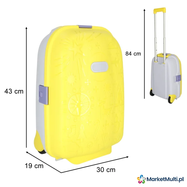 Własna walizka to idealne rozwiązanie dla każdego małego podróżnika gotowego na nowe przygody! Żółty kolor i ciekawe wzorki przykują uwagę dziecka, a może i nawet zachęcą do samodzielnego spakowania się. W zestawie dodatkowo naklejki umożliwiające podpisanie bagażu.