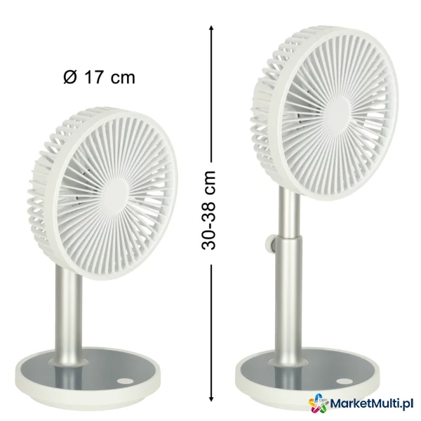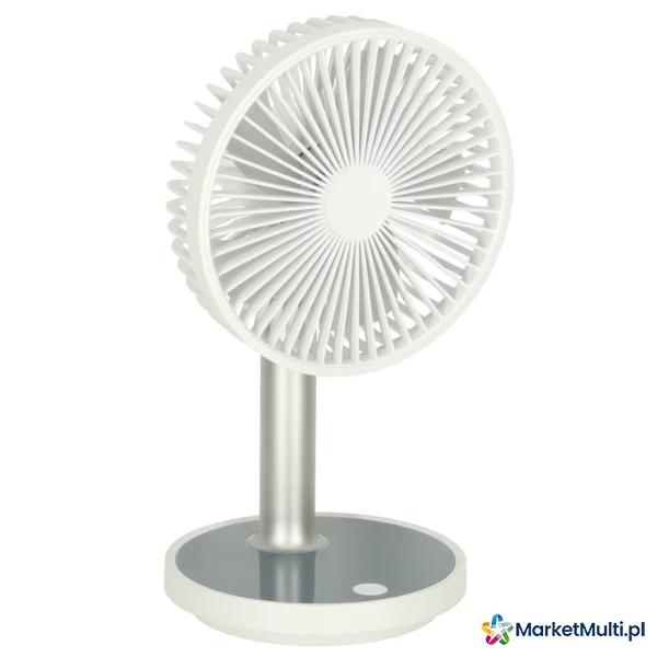 Cztery tryby pracy pozwalają na dopasowanie nawiewu do Twoich upodobań – możesz wybierać pomiędzy naturalnym, delikatnym, średnim i mocny nawiewem. Wbudowane lampki LED, które pooświetlają podstawkę, doskonale przydadzą się w nocy, zapewniając delikatne oświetlenie. Wysokość wiatraka można zmienić (z 30 do 38 cm), lepiej dopasowując go własnych potrzeb. Minimalistyczny wygląd i biały kolor nadają wiatrakowi ponadczasowego wyglądu. Postawiony na biurku nie tylko będzie zapewniał ochłodę, ale również będzie współgrał z całym wnętrzem. Dzięki niewielkim rozmiar można go postawić prawie wszędzie – na biurku, stoliku nocnym, parapecie i wszędzie tam gdzie chcesz.