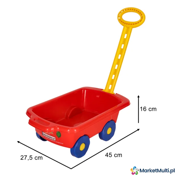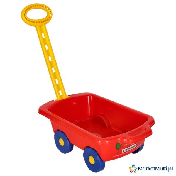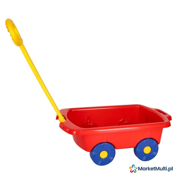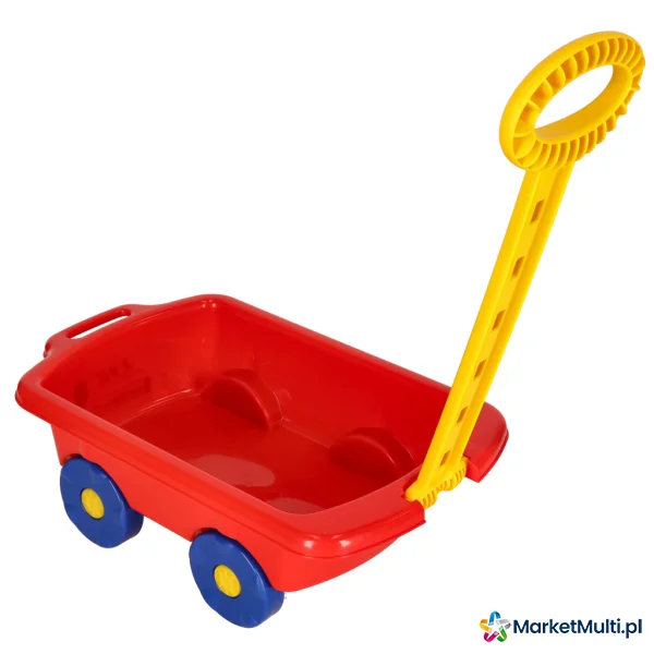 Czerwony wózek na kółkach to idealna propozycja dla Twojego dziecka! Mały odkrywca będzie mógł przewozić w nim wszelkiego rodzaju skarby: pluszaki, zabawki, piasek, kamienie – wszystko, na co tylko ma ochotę. Wykonany z plastiku dobrej jakości, dzięki czemu masz pewność, że wózek posłuży Twojemu dziecku długi czas. Posiada praktyczną rączkę oraz cztery kółka, które sprawiają, że ciągnięcie jest łatwe i przyjemne.