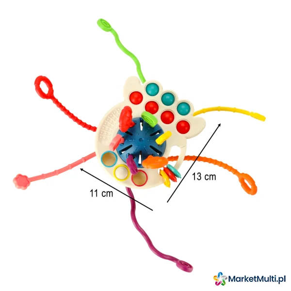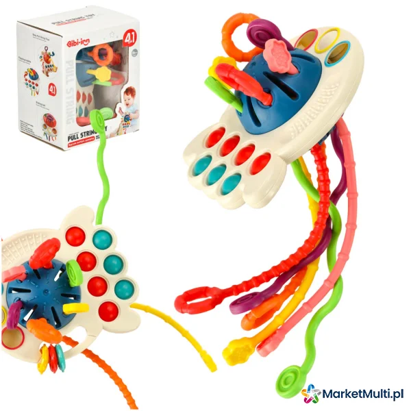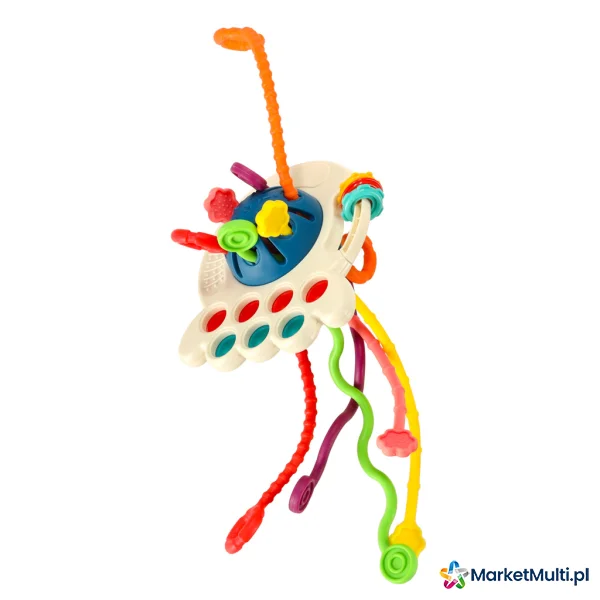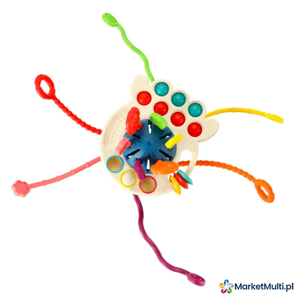 Zabawka sensoryczna to idealna propozycja dla Twojego maluszka. Sześć miękkich, kolorowych sznurków o różnorodnej strukturze to idealna zabawka dla małych rączek. Przeciąganie, ściskanie, gryzienie – każda chwila to nowe sensoryczne doświadczenie. Dodatkowe elementy, takie jak przesuwany krążek i silikonowe guziki, rozwijają zdolności manualne i koordynację oko-ręka. Gryzak to idealny sposób na zapewnienie dziecku rozrywki, a także na ukojenie bolących dziąseł w trakcie ząbkowania. Obserwuj, jak Twoje dziecko z zaciekawieniem bada różne tekstury i kolory gryzaka!