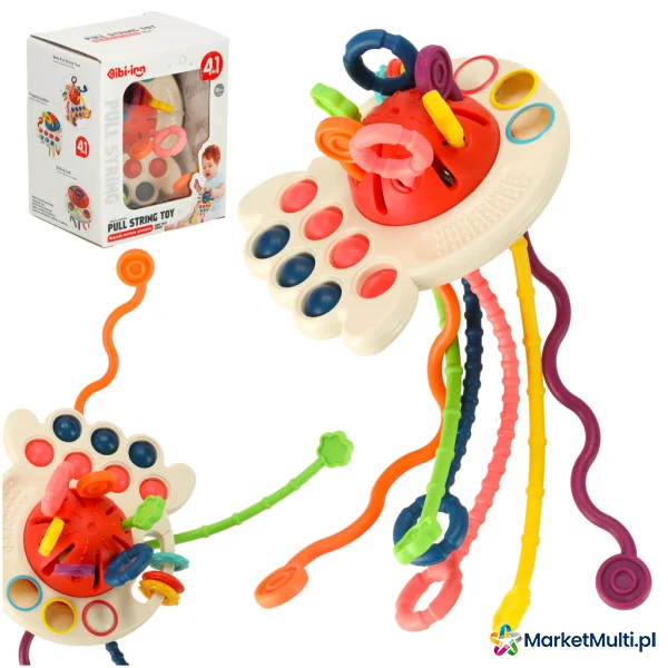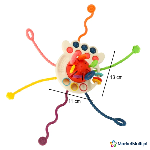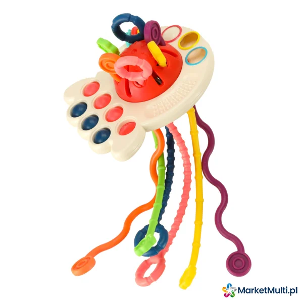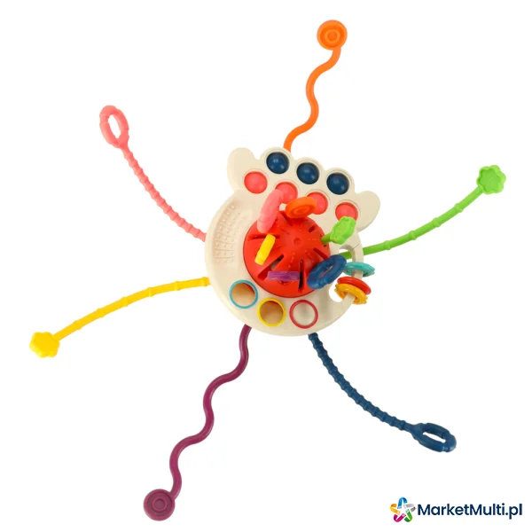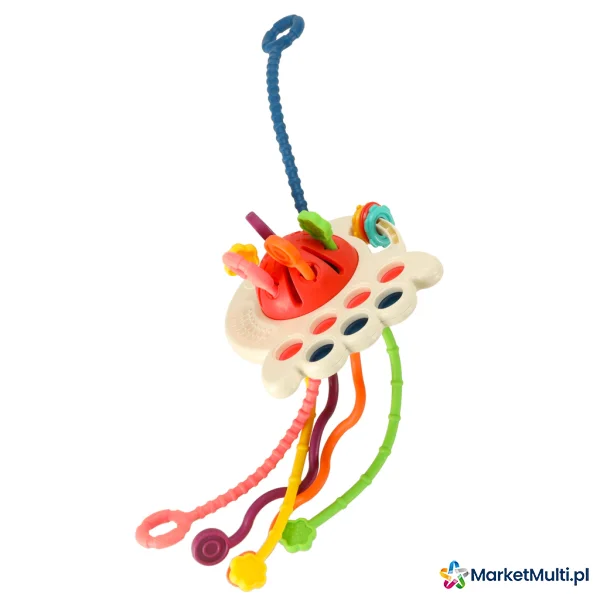 Zabawka sensoryczna to idealna propozycja dla Twojego maluszka. Sześć miękkich, kolorowych sznurków o różnorodnej strukturze to idealna zabawka dla małych rączek. Przeciąganie, ściskanie, gryzienie – każda chwila to nowe sensoryczne doświadczenie. Dodatkowe elementy, takie jak przesuwany krążek i silikonowe guziki, rozwijają zdolności manualne i koordynację oko-ręka. Gryzak to idealny sposób na zapewnienie dziecku rozrywki, a także na ukojenie bolących dziąseł w trakcie ząbkowania. Obserwuj, jak Twoje dziecko z zaciekawieniem bada różne tekstury i kolory gryzaka!