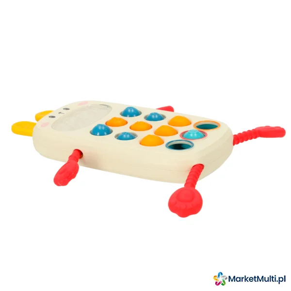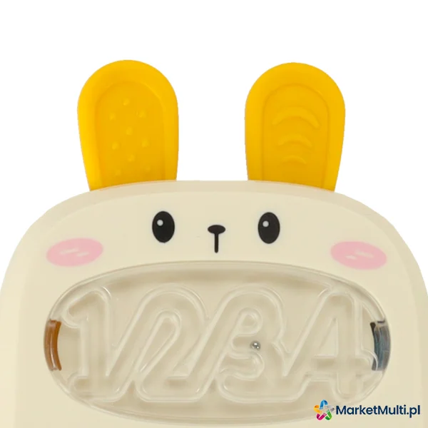 Wyraziste kolory, różne faktury i dźwięki pobudzają ciekawość malucha i zachęcają do zabawy. Labirynt z kulkami wprowadza wyzwanie dla małych rączek, a gumowe przyciski z cyferkami umożliwiają naukę liczb w przyjemny sposób. Gumowe elementy (sznurki i uszy) mogą służyć jako gryzaki. Dzięki zaokrąglonym krawędziom i bezpiecznym materiałom, zabawka jest idealna dla Twojego małego odkrywcy!
