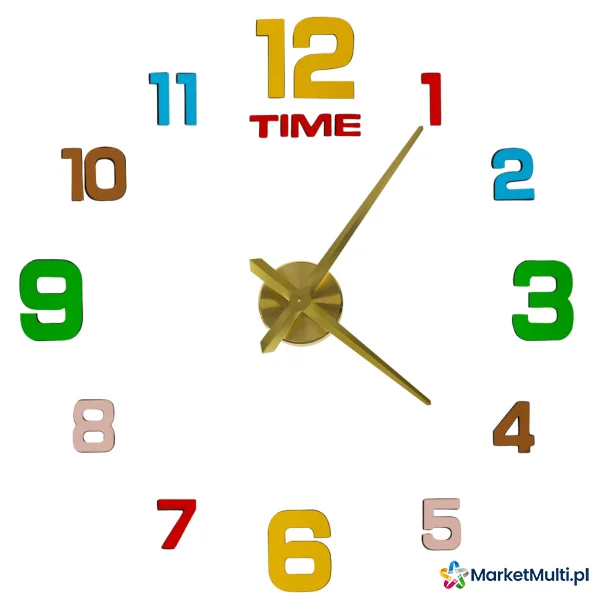 ZEGAR ŚCIENNY NAKLEJANY 12 CYFR 80-90 CM ZŁOTE WSKAZÓWKI KOLOROWY