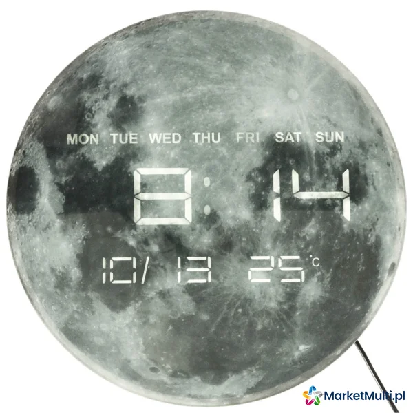 ZEGAR ŚCIENNY KSIĘŻYC Z WYŚWIETLACZEM LED 32 CM SZARY